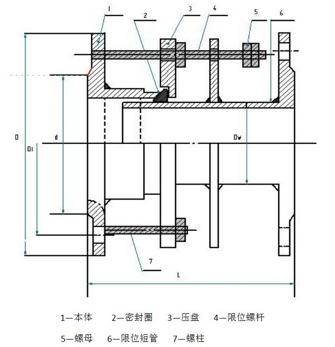 VSSJA-2(B2F)型雙法蘭限位伸縮接頭是在松套伸縮接頭原有性能的基礎(chǔ)上增設(shè)限位裝置,在大伸縮量處用雙螺母鎖定。管道在允許的伸縮量中可以自由伸縮,一旦超過其大伸縮量就起到限位,確保管道的安全運行,特別適用于有振動或有一定斜度及拐彎的管路中的連接。