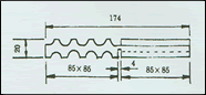 85 X 42.5 、85 X 85、131.5 X 85、174 X 85、220.5 X 85、263 X 85、174 X 174、263 X 174等,可以基本塊為單位。根據(jù)需要任意拼裝,每一基本塊使用的橡膠硬度又分為40°、60°、80°、三種規(guī)格,以適應不同垂向設計負載。